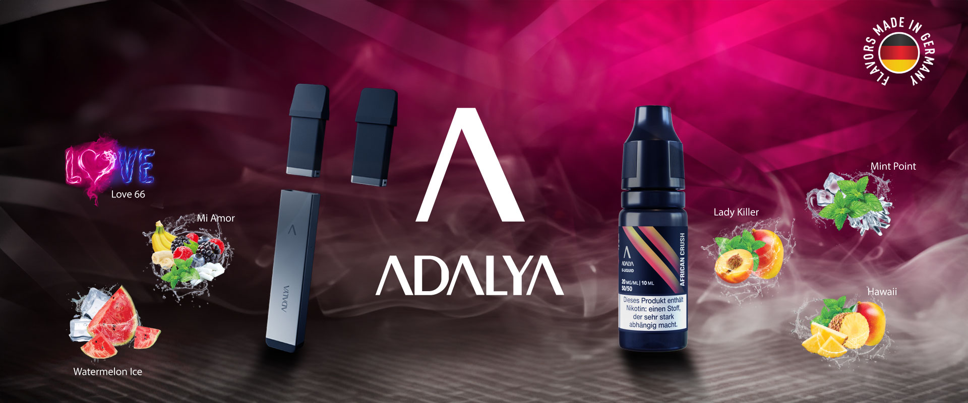 Alle Produkte sind direkt über unseren offiziellen Shop adalya-vape.de erhältlich.